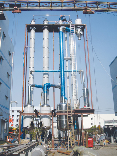 降膜式蒸發(fā)器分:?jiǎn)涡?、雙效、三效、四效、五效、六效蒸發(fā)器,適用于牛奶、葡萄糖、木糖、制藥、化工、生物工程、環(huán)保工程、廢液回收等行業(yè)進(jìn)行低溫濃縮 。